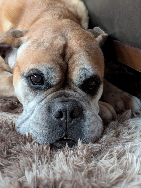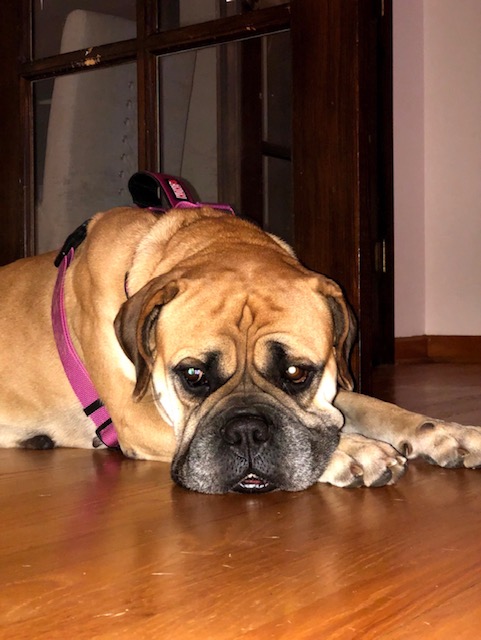 Tell us about Clemi: It had been 10 months since we lost our sweet Sofie, a pitbull, to an aggressive form of cancer, when I came across the Rescue Warriors Facebook group. My husband had always wanted a bullmastiff, and on December 15th, 2019, we met in person a fawn-colored female bullmastiff being fostered by the name of Clementine.
