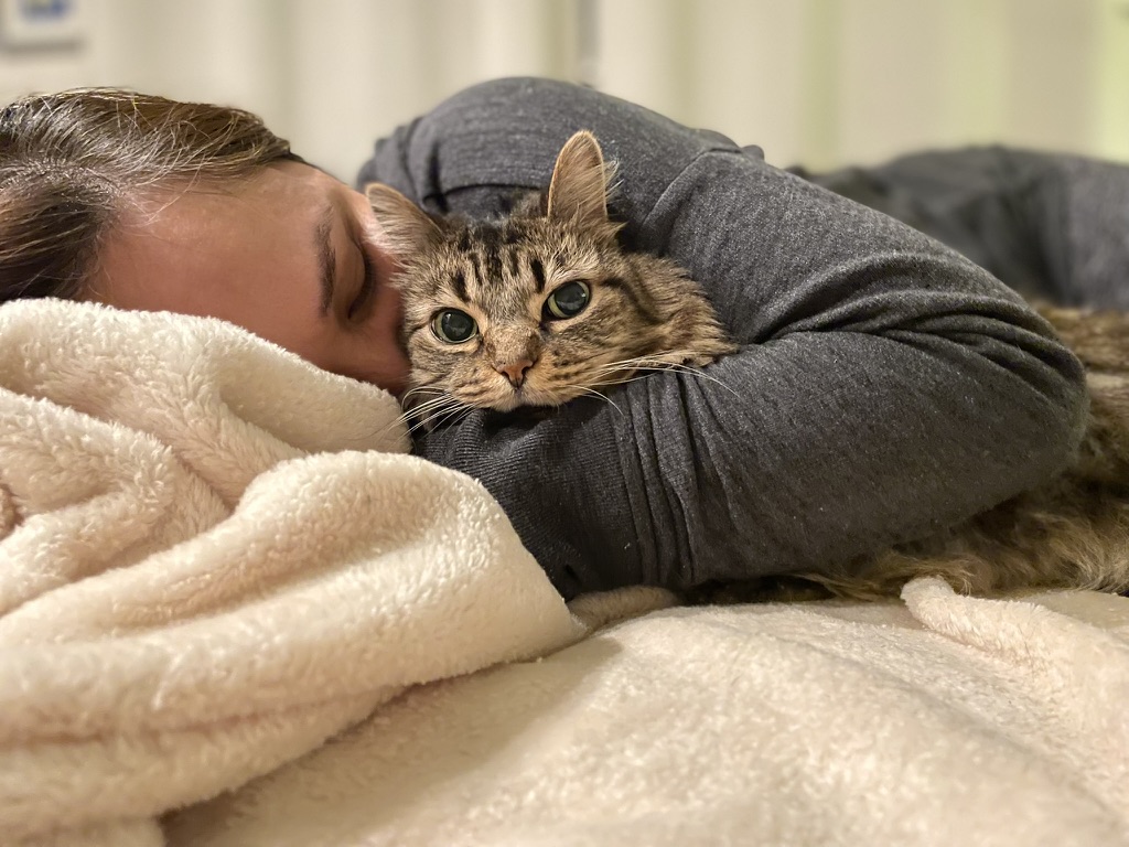 curling beside your furry pillow,