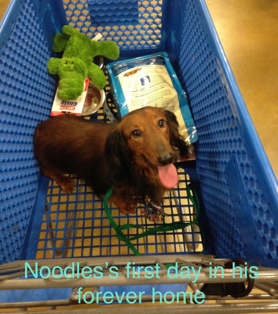 Tell us about Noodles: I adopted six-year-old Noodles on Friday November 6, 2015. In many ways, I think the universe was pushing me toward him. I’d developed a sudden, unexpected love of dachshunds a few months earlier, and for whatever reason I decided without hesitation that my first dog would be a dachshund. I scoured PetFinder and was drawn to Noodles’s profile, available for adoption from Reno Ranch in Camden MO.