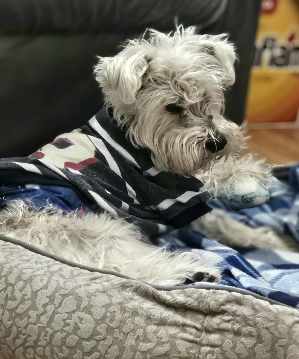 He grew up with three Pitbull sisters and cats but he was the toughest of them all. With a big personality and full of wonder and love he got along with everyone. He loved his squeaky toys, balls, chews and any fruit or veggie I would offer. Most of all he loved me, his mom. He was a true Momma's boy. He loved rough housing and at the end of the day, would decompress by hanging out in the living room watching TV with us. Then bed time w his bed at the foot of my bed, waiting to be tucked in. He was the best, my heart, my soul doggie.